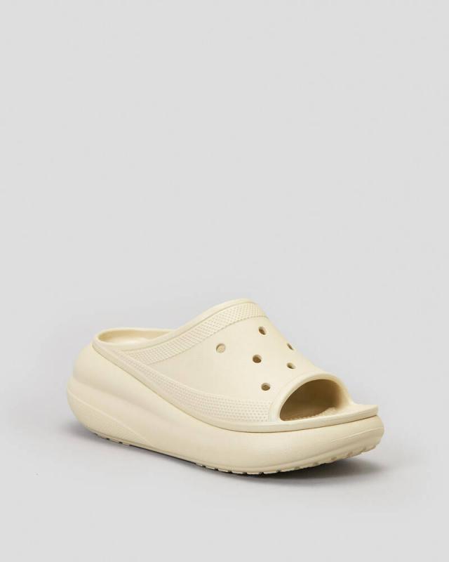 Brand: Crocs Product: Crush Slides Pattern: Plain Sandal Style: Slides Heel Type: Flatform Heel Sole Material: Rubber sole Additional Features: Customizable with Jibbitz charms