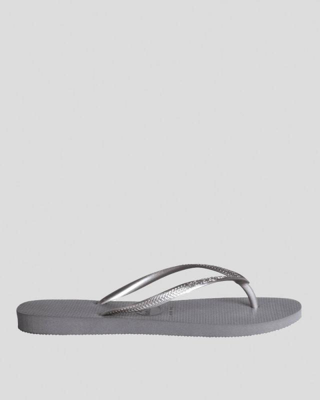 Brand: Havaianas Product: Womens Slim Metallic Thongs Composition: Rubber Shoe Features: Flexible Thong Features: Slim straps Sole Material: Rubber sole …