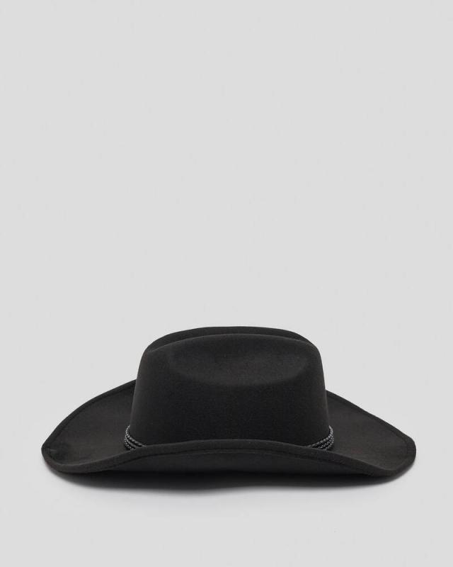 Brand: Mooloola Product: Womens Wayward Felt Hat Pattern: Plain Composition: Polyester Hat Style: Felt hat Headwear Brim Width: 10cm Headwear Features: Internal sweatband, One size fits most
