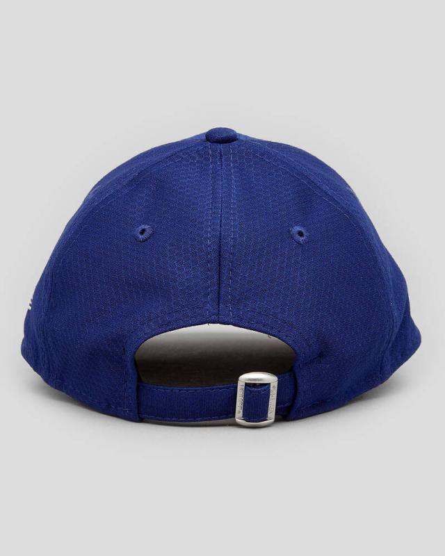Brand: New Era Product: Womens LA Dodgers Cap Pattern: Plain Composition: Polyester Trim Detail: Embroidered logo trim Cap Style: Adjustable cap Peak Profile: Curved peak Fastener Type: Adjustable strap back fastener