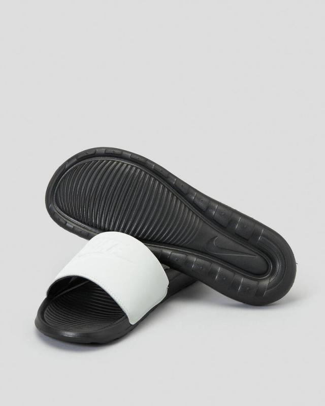 Brand: Nike Product: Mens Victori One Slides Pattern: Plain Sandal Style: Slides Shoe Features: Airbag Cushioning, Super Soft Heel Type: Flat Heel Sole Material: Rubber sole
