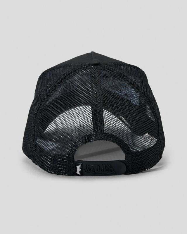 Brand: Von Dutch Product: Mens Triple Black Trucker Cap Pattern: Plain Care Instructions: Do not wash. Spot clean with a damp cloth. Trim Detail: Embroidered logo trim Cap Style: Trucker cap Peak Profile: Curved peak Fastener Type: Snap fastener …
