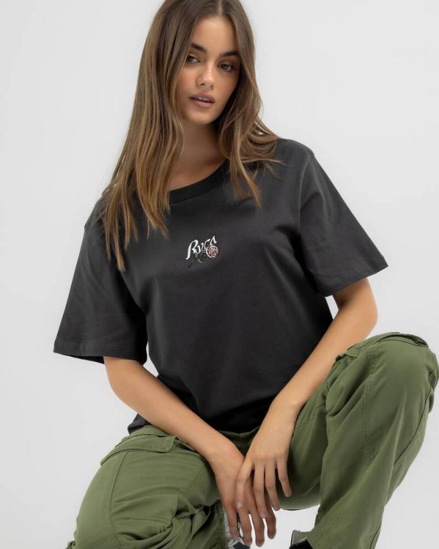 RVCA T-Shirts | Womens Roses Only Easy T-Shirt Washed Black