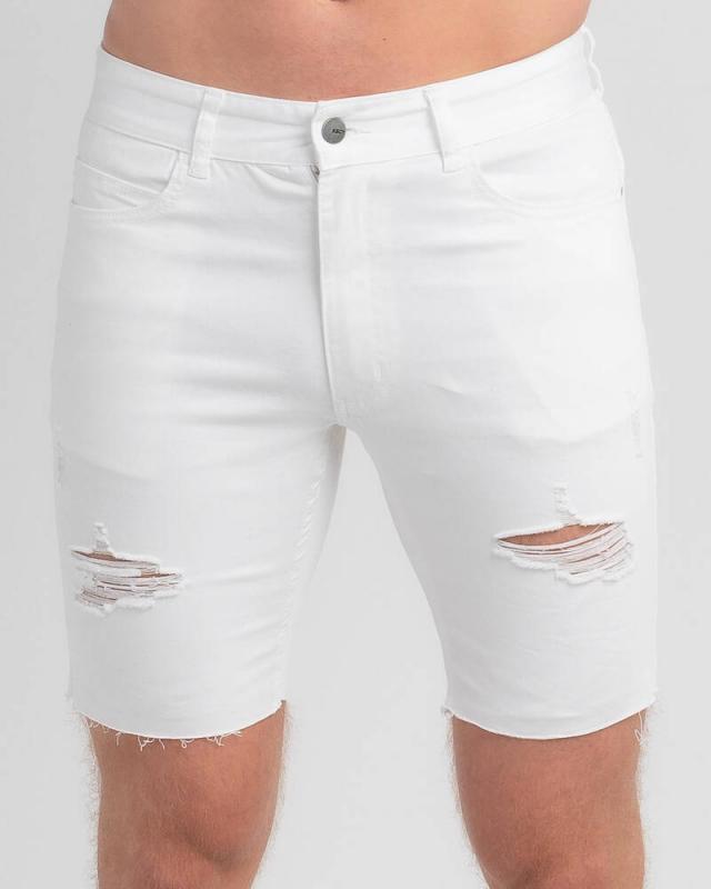 Kiss Chacey Denim | Mens Biker Denim Shorts White